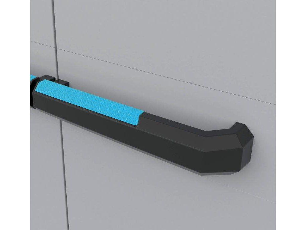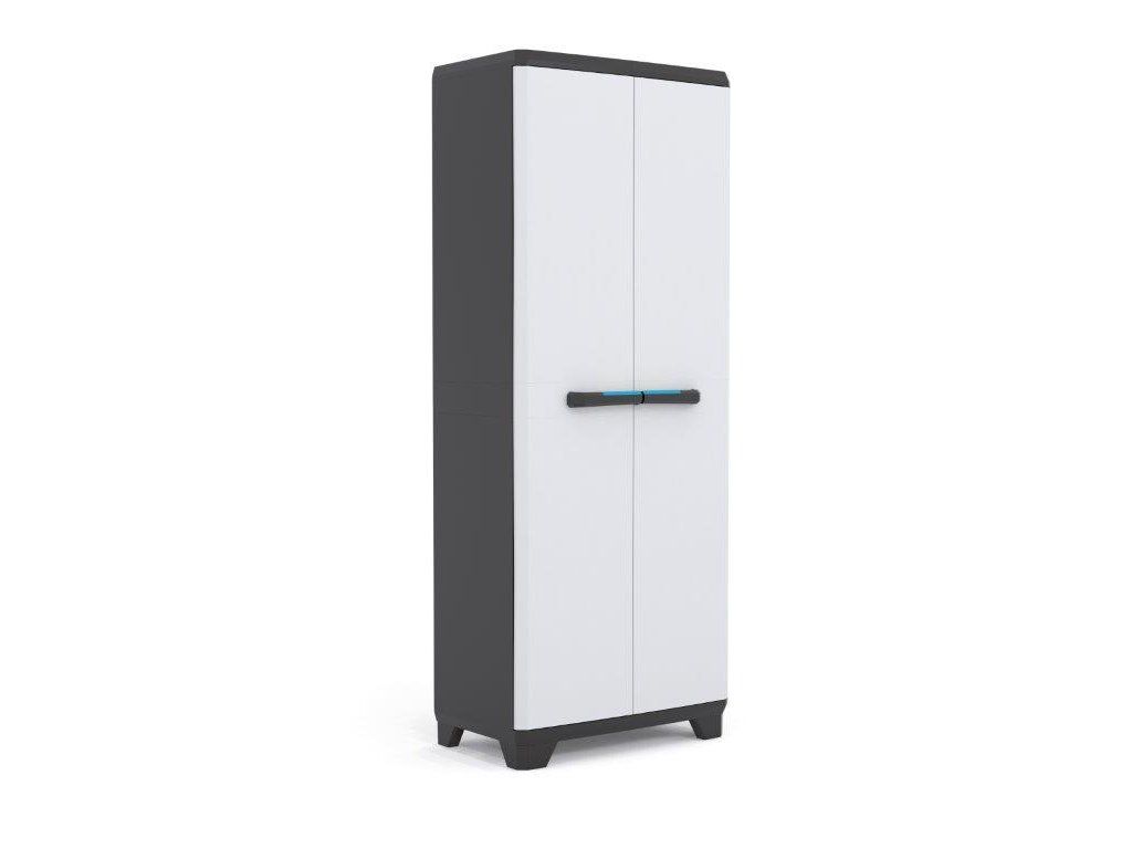 Skříň váží pouze 13,14 kg a díky pevné plastové konstrukci vydrží i v náročnějších podmínkách. Ergonomické soft touch rukojeti usnadňují manipulaci a možnost uzamčení přidává na bezpečnosti.