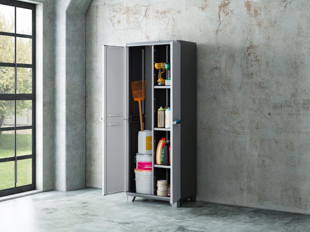 Skříň Keter Linear Utility se díky svému černošedému provedení a čistým liniím hodí do různých prostor – od koupelny přes dílnu až po garáž. Praktické dělení vnitřního prostoru vám umožní přizpůsobit skříň vašim potřebám. Tři nastavitelné police v pravé části pojmou běžné vybavení domácnosti, zatímco levá část zůstává volná pro uložení objemnějších či delších předmětů.