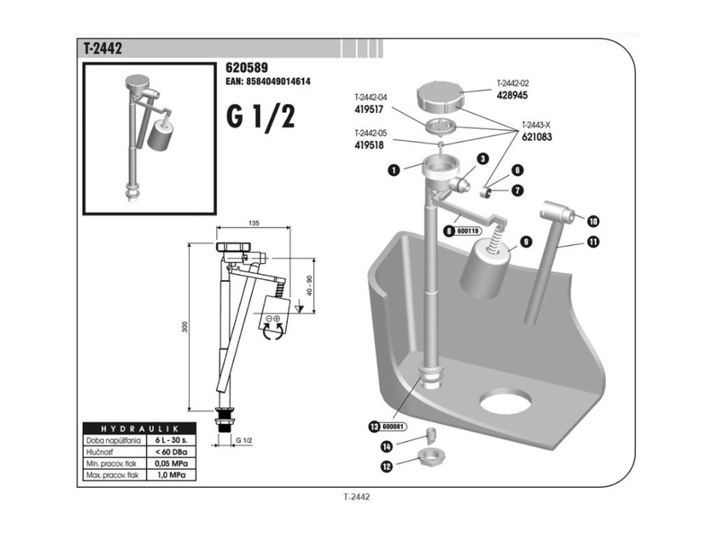 SLOVARM ventil G1/2" plovákový, spodní, T-2442