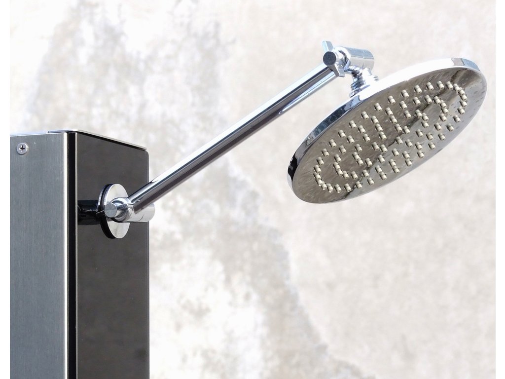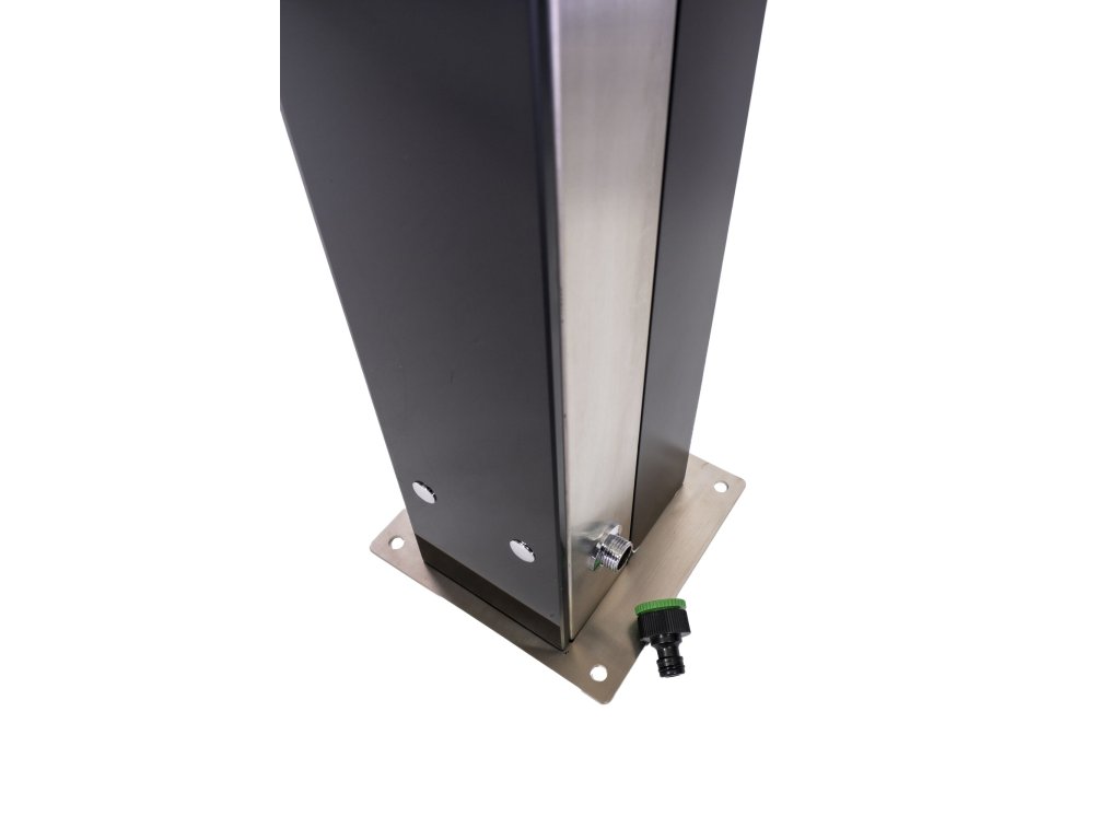 Solární sprcha CF Exclusive Prémiová solární sprcha vyrobená zkvalitních materiálů – skla, hliníku a nerezové oceli. Čelní část sprchy tvoří černá skleněná deska, tělo sprchy je vyrobeno znerezové oceli, zadní část tvoří hliníkový solární zásobník na vodu o objemu 18 l. Sprcha je vyrobena vNěmecku a má vysokou úroveň zpracování. Sprcha se svým decentním elegantním vzhledem hodí ke všem prémiovým bazénům nebo do upravených zahrad, kde bude vkusným doplňkem. Sprcha je vybavena velkou sprchovací hlavicí, která zajišťuje příjemné sprchování připomínající lehký letní deštík a je vysoká 210 cm. Připojení na přívod vody je velmi jednoduché pomocí hadicové rychlospojky (součástí balení). Solární sprcha je ideální zdroj teplé vody bez použití elektřiny. Voda je v solárním zásobníku jednoduše ohřívána sluníčkem až na 60°C. Ktomu přispívá i černé provedení sprchy. Sprcha je vybavena mísící pákovou baterií, abyste si nastavili teplotu vody, která vám bude vyhovovat. Montáž sprchy je velmi jednoduchá a zvládnete ji sami. Solární sprcha se připevní kpodkladu pomocí 4 šroubů, které jsou součástí balení. Pak už stačí připevnit zahradní hadici a je to hotové. Pokud nechcete sprchu připevňovat kzemi, můžete ke sprše dokoupit podlahový podstavec a připevnit ksprchu kněmu. Pokud je podstavec dostatečně velký (např. Podstavec k solární sprše Planet Pool), zajistí samonosnost sprchy a není ho potřeba více kotvit. Podstavec je praktickým doplňkem ksolární sprše – je protiskluzový, bezpečný a sodtokem vody. Sprchu připevněnou kpodstavci lze snadno přenést na jiné místo vzahradě. Sprcha slouží nejen pro osvěžení, ale doporučujeme se osprchovat před každým koupáním ve vašem bazénu. Do vody se pak dostává méně nečistot, což snižuje spotřebu bazénové chemie a potřebu péče o bazén. Parametry:Materiál sklo, hliník, nerezPoužití k bazénu i do zahradyObjev solárního zásobníku 18 lMax. teplota vody 60°CVýška sprchy 210 cmVáha 18 kgVelikost sprchovací hlavice 15 x 15 cmVelikost základny 20 x 20 cmBarva černá, stříbrnáRegulace poměru studené a teplé vody anoPřipojení na zahradní hadici ano, součástí baleníKotvení kotvící šrouby, součástí baleníDoplňkové parametry