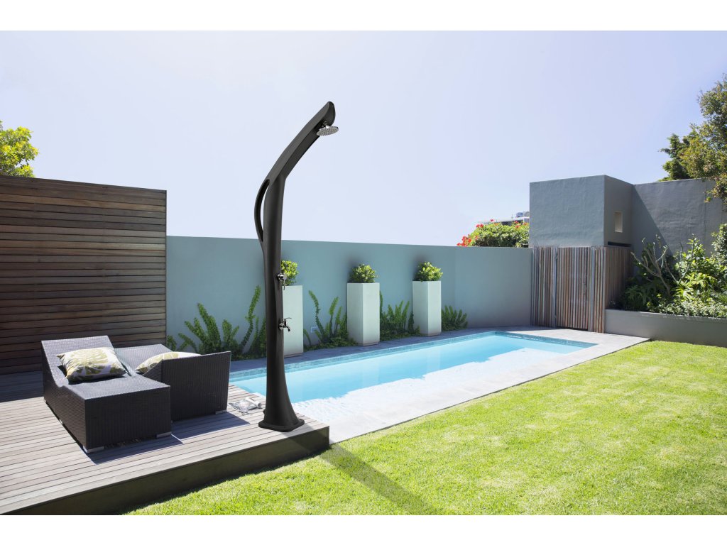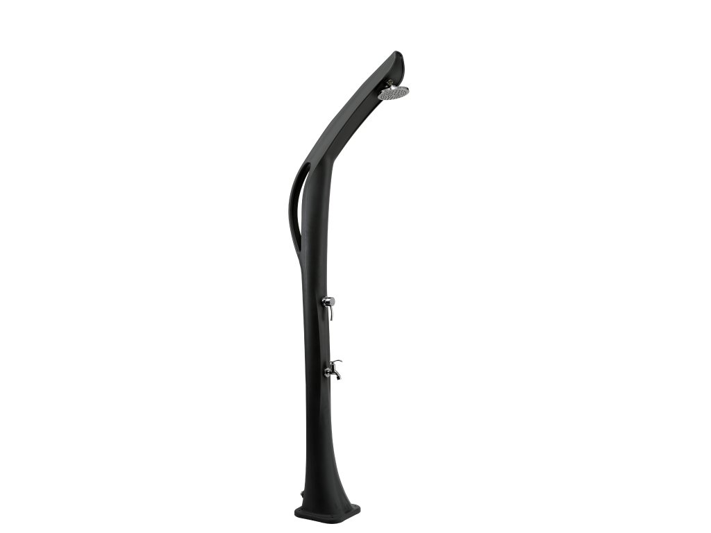 Solární sprcha CF Mammut Originální solární sprcha, která se hodí do každé zahrady. Sprcha je vyrobena z kvalitníhoPVC odolného vůči UV záření, má XL zásobník o objemu 35 l a výšku 220 cm. Je vybavena praktickým kohoutkem na oplach nohou. Sprcha vyniká svým jedinečným vzhledem. Připojení na přívod vody je velmi jednoduché pomocí hadicové rychlospojky (součástí balení). Solární sprcha je ideální zdroj teplé vody bez použití elektřiny. Voda je v solárním zásobníku jednoduše ohřívána sluníčkem až na 60°C. Ktomu přispívá i černé provedení sprchy. Sprcha je vybavena mísící pákovou baterií, abyste si nastavili teplotu vody, která vám bude vyhovovat. Montáž sprchy je velmi jednoduchá a zvládnete ji sami. Solární sprcha se připevní kpodkladu pomocí 4 šroubů, které jsou součástí balení. Pak už stačí připevnit zahradní hadici a je to hotové. Pokud nechcete sprchu připevňovat kzemi, můžete ke sprše dokoupit podlahový podstavec a připevnit ksprchu kněmu. Pokud je podstavec dostatečně velký (např. Podstavec k solární sprše Planet Pool), zajistí samonosnost sprchy a není ho potřeba více kotvit. Podstavec je praktickým doplňkem ksolární sprše – je protiskluzový, bezpečný a sodtokem vody. Sprchu připevněnou kpodstavci lze snadno přenést na jiné místo vzahradě. Sprcha slouží nejen pro osvěžení, ale doporučujeme se osprchovat před každým koupáním ve vašem bazénu. Do vody se pak dostává méně nečistot, což snižuje spotřebu bazénové chemie a potřebu péče o bazén. Parametry:Materiál PVC odolného vůči UVPoužití k bazénu i do zahradyObjev solárního zásobníku 35 lMax. teplota vody 60°CVýška sprchy 220 cmVáha 12 kgVelikost sprchovací hlavice ø 15 cmVelikost základny 26 x 27 cmBarva černáRegulace poměru studené a teplé vody anoKohoutek na oplach nohou anoPřipojení na zahradní hadici ano, součástí baleníKotvení kotvící šrouby, součástí baleníDoplňkové parametry