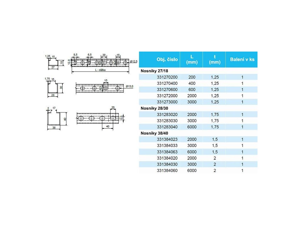 SOLIDA montážní nosník 27/18x600mm, ocel pozink, 331271860