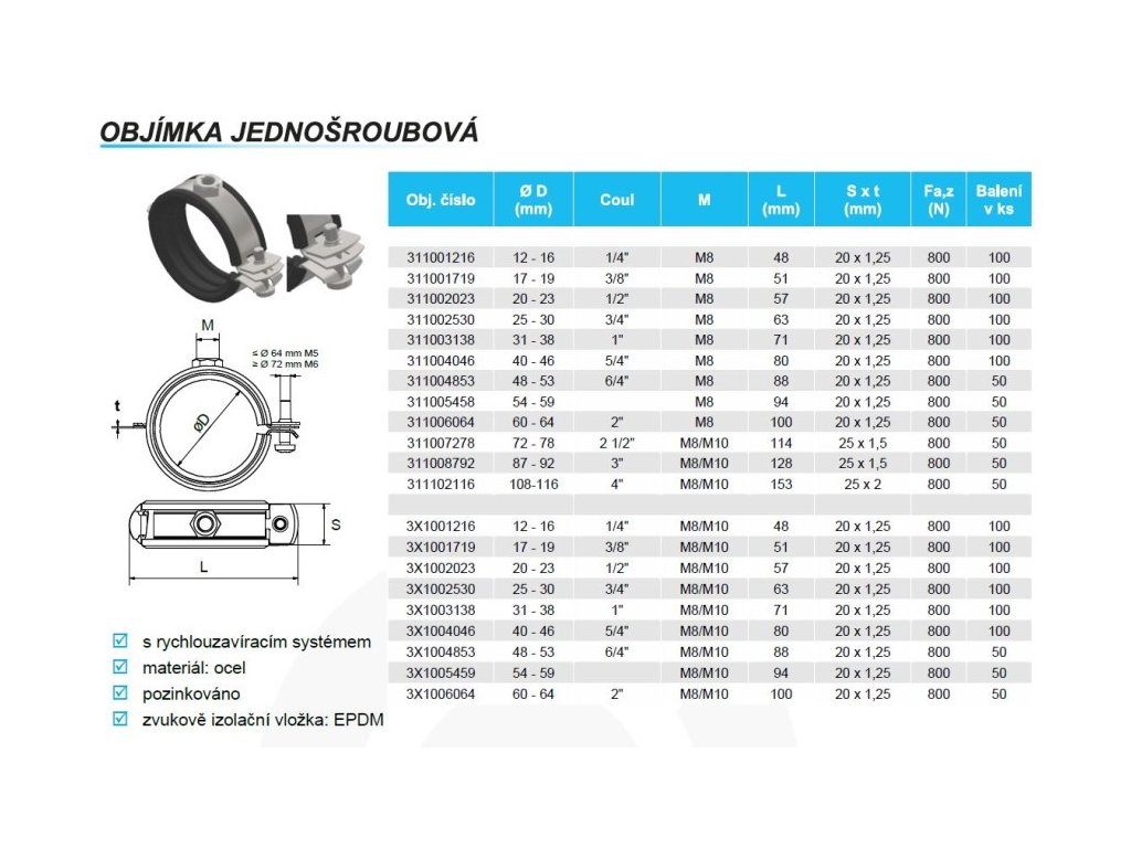 - Materiál tlumící vložky: SBR/EPDM