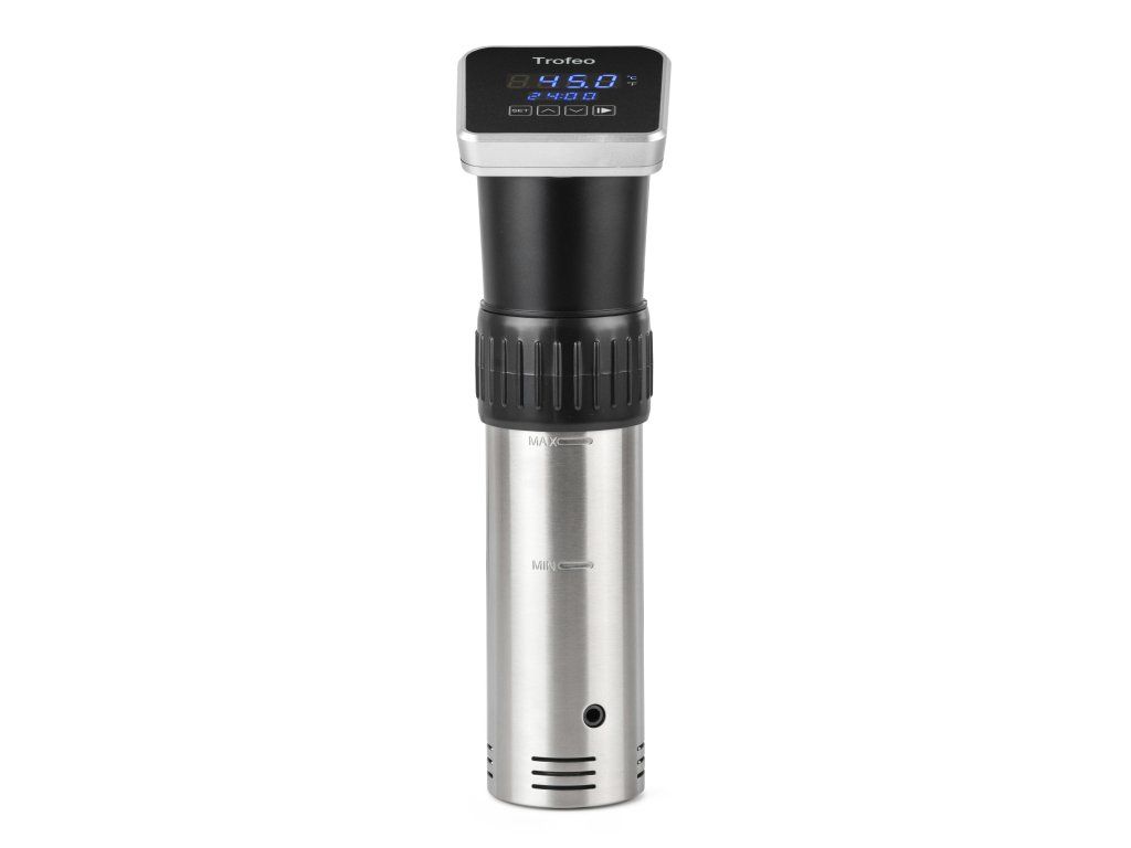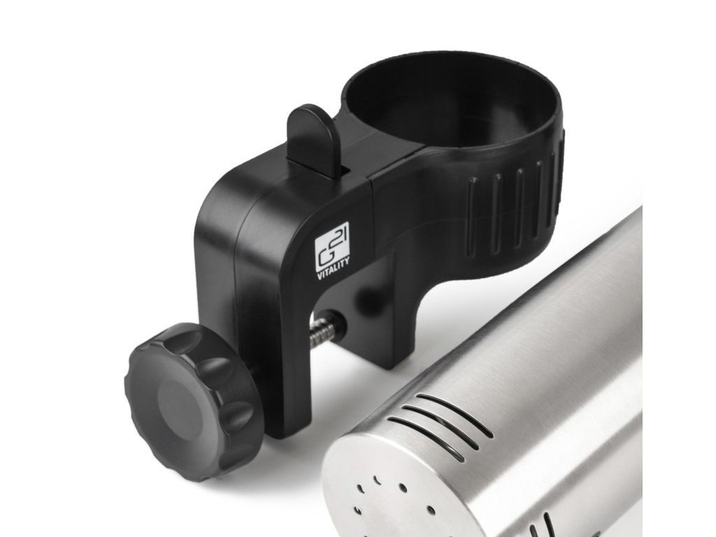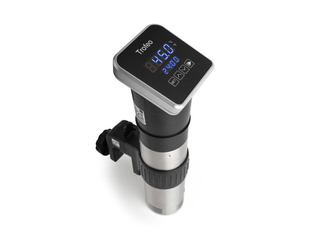 Ponorný pomalý vařič G21 Trofeo s příkonem 1 200 W je skutečným mistrem v sous-vide vaření ve vakuu. Je připraven pro každodenní bezpečné použití a vyladěný do nejmenších detailů. Elegantní tělo se skládá ze dvou částí – ponorná část s vnitřní varnou spirálou a vrchní část s elektronikou a kulatým dotykovým displejem. Pro bezpečné zavěšení sous-vide vařiče G21 Trofeo na okraj varné nádoby jsme ponorný vařič vybavili posuvným upevňovacím klipsem.
