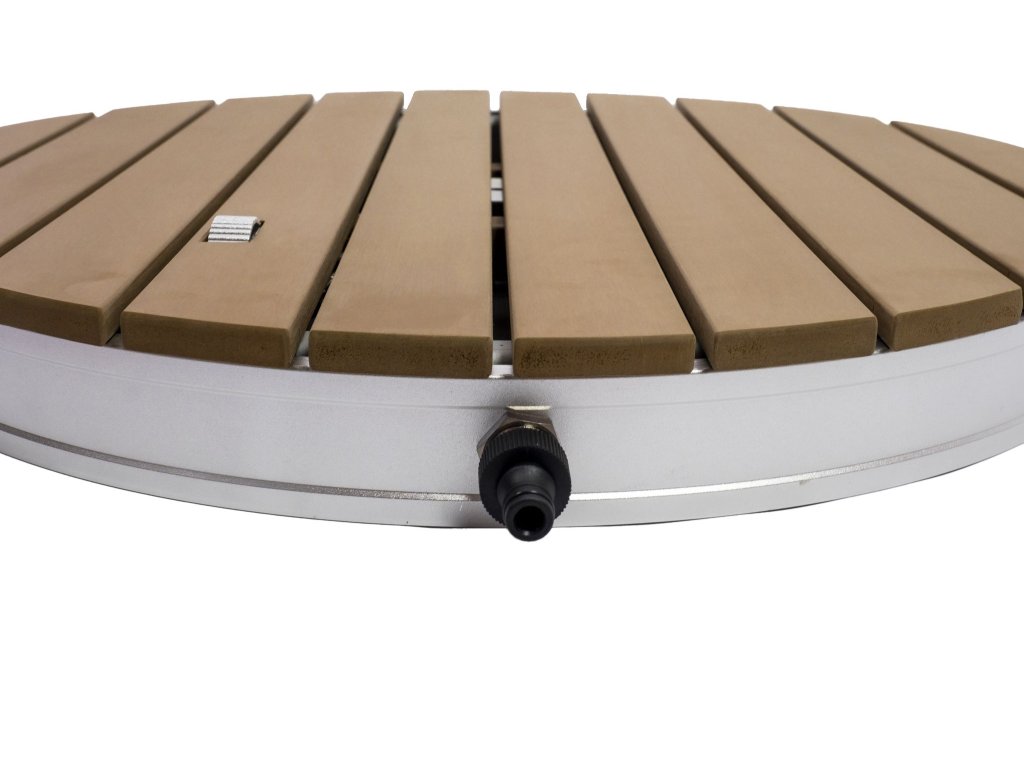 Sprchovací deska CF Sprcha, která nezkazí žádnou zábavu a budou ji milovat děti i dospělí! Sprchu zapnete otočným kolečkem, které je umístěné vroštu sprchy a nastavíte si požadovanou výšku proudu. Ten může být vysoký až 4 m! Po obvodu sprchy je umístěno 18 trysek ze kterých tryská voda do požadované výšky a dopadá na vás jako při lehkém letním deštíku. A zábava začíná! Sprcha má průměr 70 cm a je vyrobena z kvalitníhoWPC vdesignu teakového dřeva. Váha sprchy je 7 kg. Ze spodní strany má sprcha praktické madlo a lze ji tak snadno přenést kamkoliv vzahradě. Připojení sprchy na přívod vody je velmi jednoduché pomocí hadicové rychlospojky, která je součástí balení. Sprcha slouží nejen pro osvěžení, ale doporučujeme se osprchovat před každým koupáním ve vašem bazénu. Do vody se pak dostává méně nečistot, což snižuje spotřebu bazénové chemie a potřebu péče o bazén. Parametry:Materiál WPC v teakové provedeníPoužití k bazénu i do zahradyPrůměr 70 cmOvládání nožníPočet trysek 18Výška proudu až 4 mRegulace výšky proudu anoVáha 7 kgBarva teak, bíláManipulační madlo anoPřipojení na zahradní hadici ano, součástí baleníDoplňkové parametry