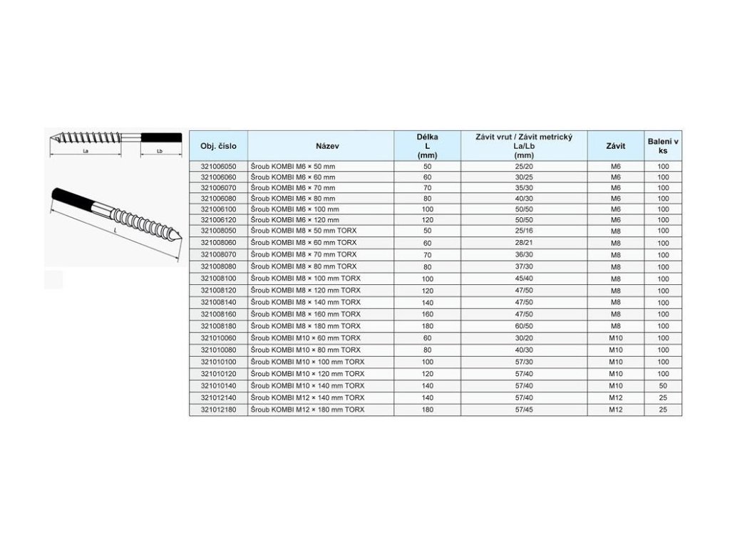 Šroub TORX M8x120mm kombi, ocel, 321008120