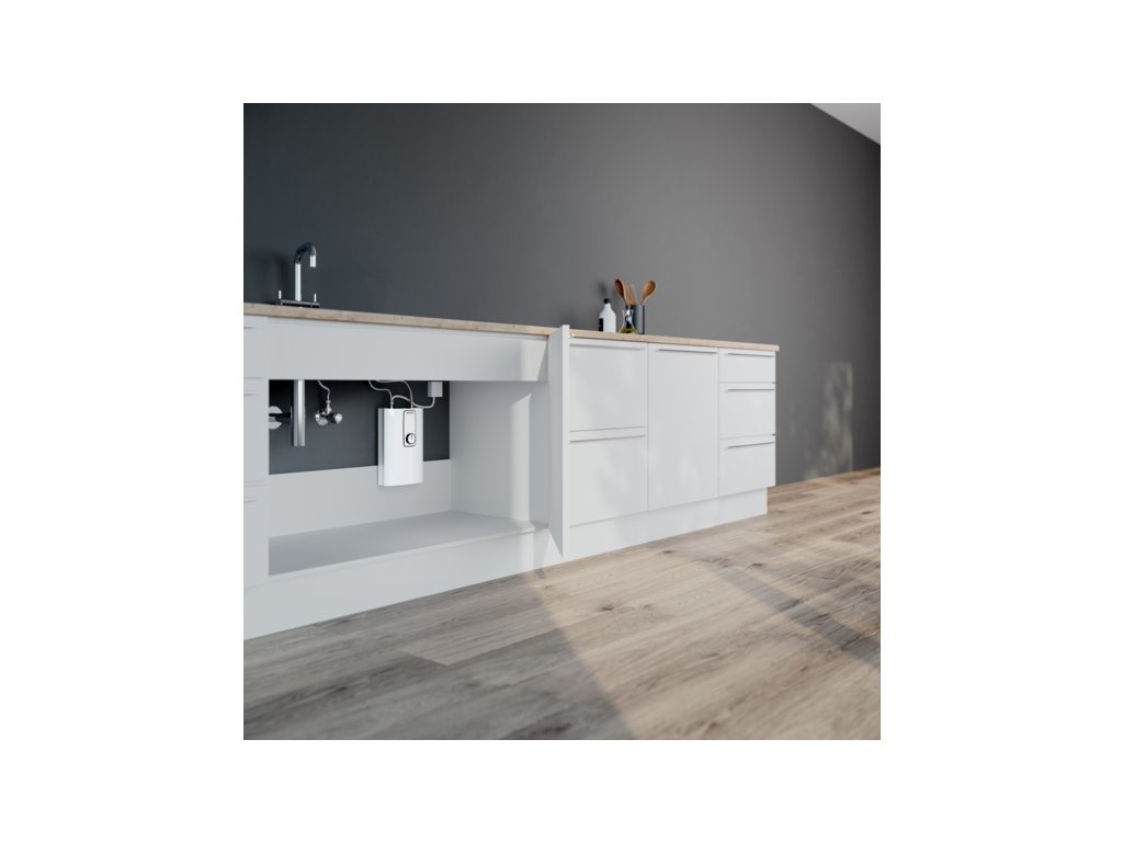 Ne všude je k dispozici mnoho prostoru pro domácí techniku. Právě zde jsou kompaktní rozměry tohoto přístroje rozhodující výhodou: v dolní skříňce pod kuchyňským dřezem nebo umyvadlem v koupelně jej můžete dokonale umístit a zároveň využít prostor skříňky jako obvykle, například k uložení čisticích prostředků. Požadovanou teplotu teplé vody můžete snadno zvolit pomocí otočného knoflíku na přístroji. Nastavitelná ochrana před opařením vám zajistí dokonalou bezpečnost.