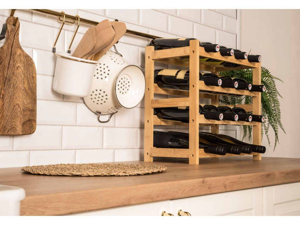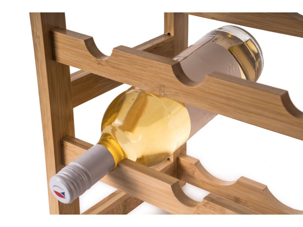 Pořiďte si designově čistý a zároveň praktický stojan na 16 lahví vína. Precizně zpracované bambusové dřevo mu dává příjemný přírodní vzhled, takže stylově doplní každý interiér. Hlavní ale je, že jsou v něm láhve bezpečně a správně uložené, nedochází k vysychání korku a snadno se v nich orientujete.
