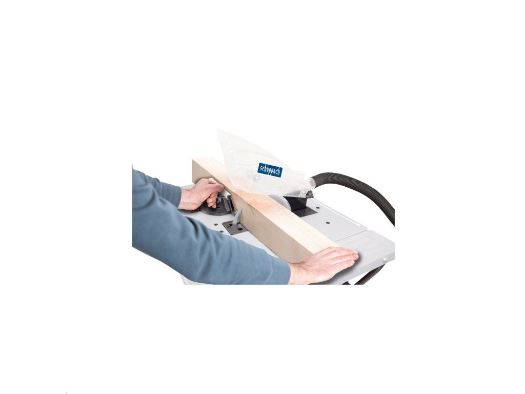 Neocenitelným pomocníkem je potom možnost bočního (vpravo i vlevo) rozšíření stolu, díky kterému si upravíte pracovní plochu přesně podle okamžité potřeby. Výškové nastavení kotouče a jeho sklon se lehce ovládá velkým otočným kolem.