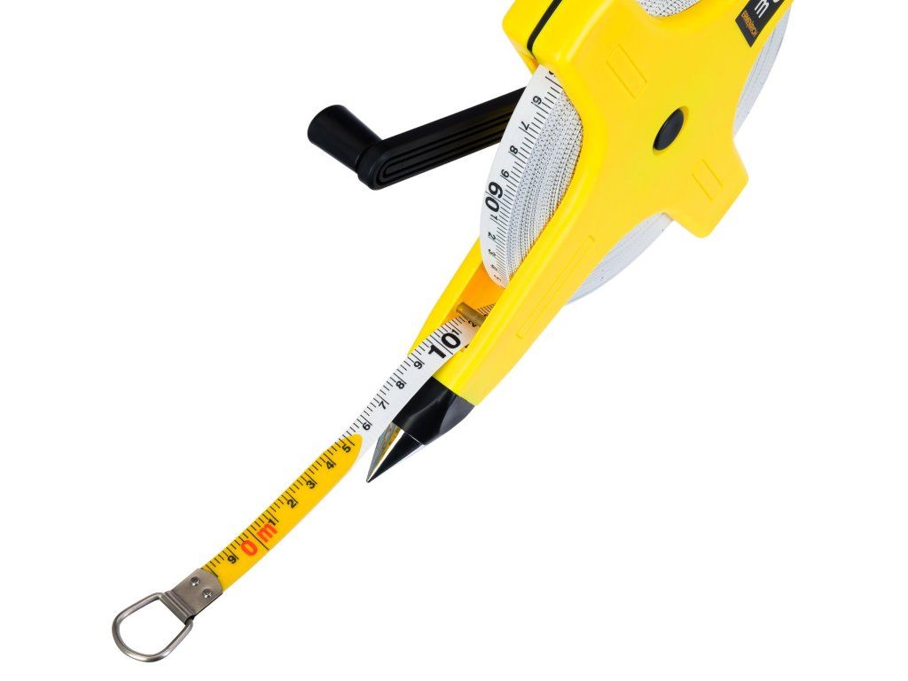 Páska metru má oboustrannou stupnici. Vždy tedy víte, jakou hodnotu jste naměřili. Klidně ji složíte nebo stočíte do klubíčka, aniž by došlo k jejímu zkroucení či zamotání. Jelikož jí neublíží vlhkost ani voda, použijete ji i za nepříznivých podmínek. Kryt metru z ABS plastu odolá určité zátěži a chrání měřící pásmo před poškozením.