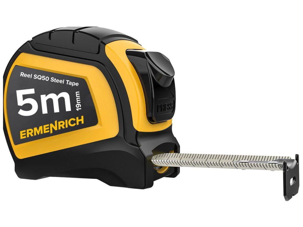 Svinovací metr Ermenrich Reel SQ50 vám pomůže se všemi pracemi na stavbách, opravami i tvůrčími činnostmi designérů a dekoratérů. Změřte přesné rozměry stavebních materiálů, dílů či velikost volného prostoru v místnosti při rekonstrukci bytu. Snadno zjistíte, jak velký nábytek si můžete pořídit, aby se vám vešel do pokoje. S metrem jednoduše naměříte vzdálenost až do 5 metrů. Aretační mechanismus vám navíc umožní zajistit naměřenou hodnotu na metru.