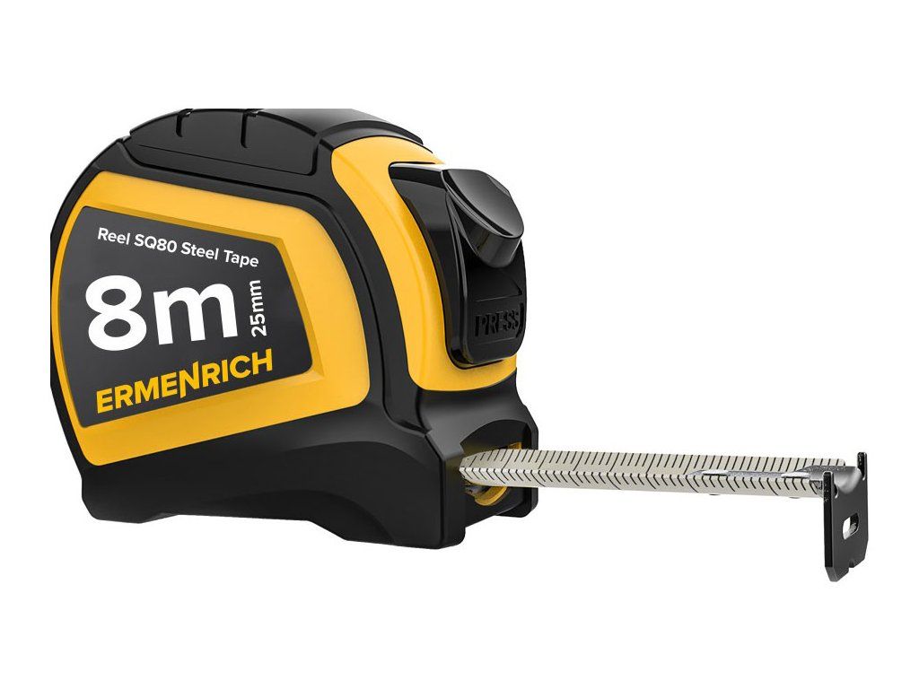 Svinovací metr Ermenrich Reel SQ80 vám pomůže se všemi pracemi na stavbách, opravami i tvůrčími činnostmi designérů a dekoratérů. Změřte přesné rozměry stavebních materiálů, dílů či velikost volného prostoru v místnosti při rekonstrukci bytu. Snadno zjistíte, jak velký nábytek si můžete pořídit, aby se vám vešel do pokoje. S metrem jednoduše naměříte vzdálenost až do 8 metrů. Aretační mechanismus vám navíc umožní zajistit naměřenou hodnotu na metru.