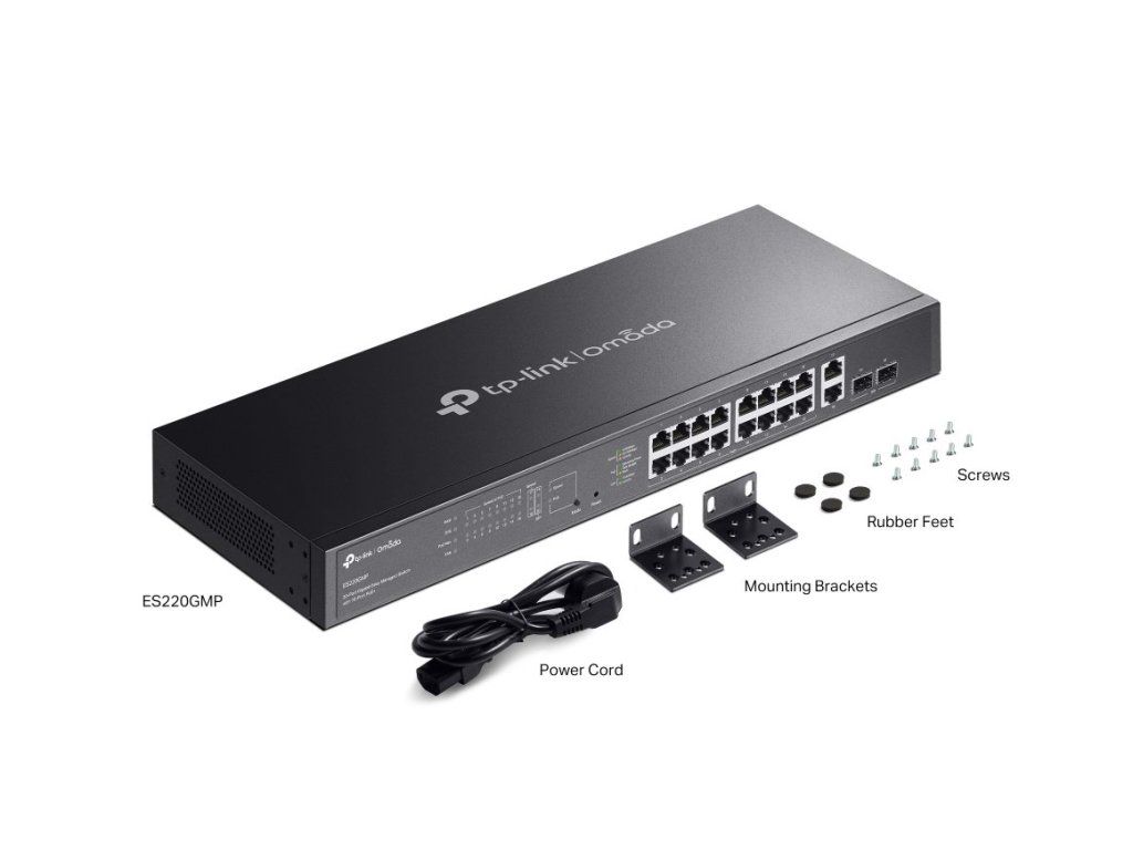 Switch TP-Link ES220GMP 2x GLan, 16x GLan s PoE+, 2x SPF combo, 250W, 19", Omáda SDN, 52453747
