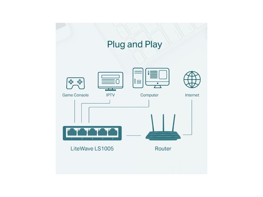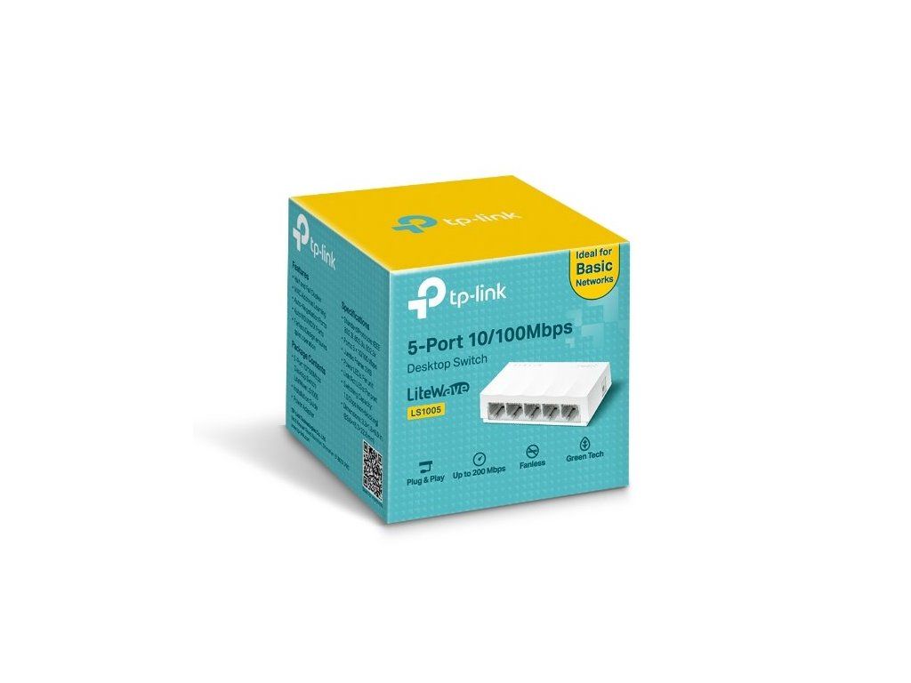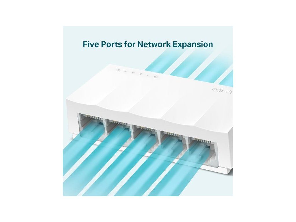 5portový stolní switch LS1005 světoznámé značky TP-Link poskytuje přenosovou rychlost LAN portů 100 Mbps. Všech pět portů podporuje funkci Auto MDI / MDIX a vy se tak nemusíte starat o to, který kabel máte připojit.