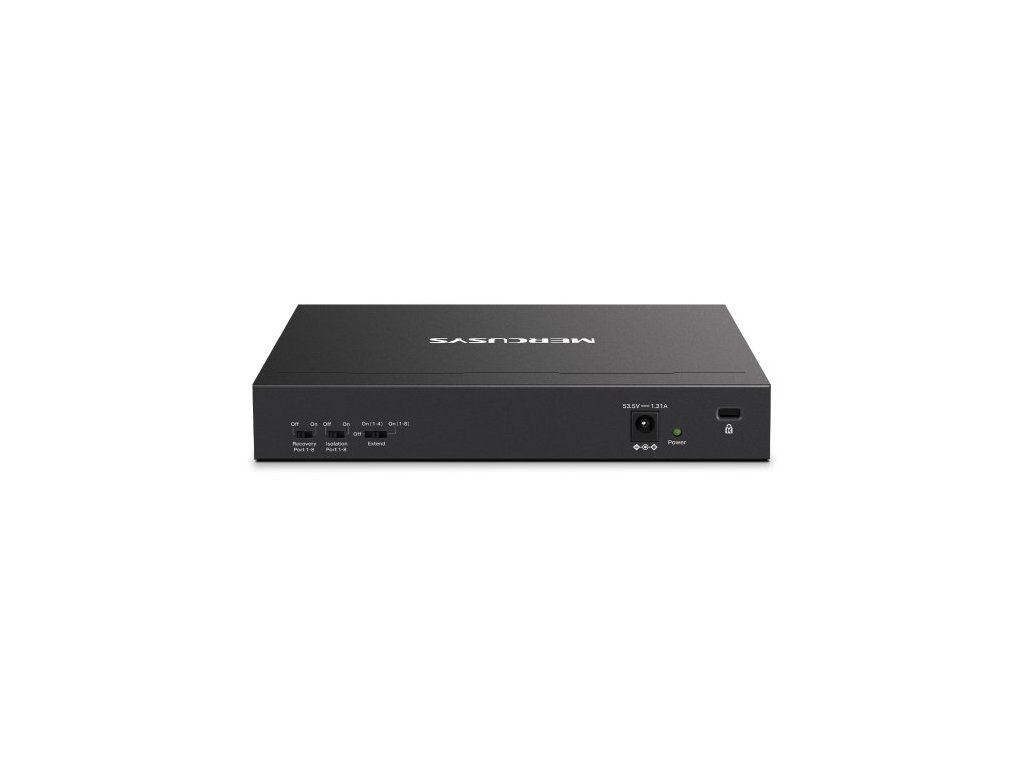 Se switchem Mercusys MS110CP od TP-Link získáte stabilní připojení, které se hodí hlavně v menších firmách, ubytovnách nebo kancelářích. Poskytne vám osm 10/100Mbps portů PoE+ a 2 gigabitové porty bez PoE. K napájení a přenosu dat vám postačí jeden ethernetový kabel. Jistě vás potěší také tichý chod a nízká spotřeba energie díky bezventilátorovému provedení. Odolný kovový kryt dobře odvádí teplo.
