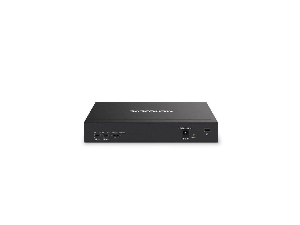 Se switchem Mercusys MS110P od TP-Link získáte stabilní připojení, které se hodí hlavně v menších firmách, ubytovnách nebo kancelářích. Poskytne vám 10 portů 10/100 Mbps, z nichž 8 umožňuje připojení PoE+. Zbylé 2 uplink porty slouží v režimu izolace pro připojení k internetu a NVR. K napájení a přenosu dat vám postačí jeden ethernetový kabel.