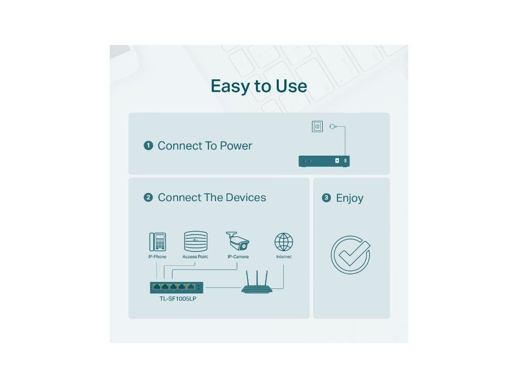 - Skvělý plug-and-play switch TP-Link TL-SF1005LP nabízí dokonalé řešení pro vaší domácí i firemní síť bez nutnosti konfigurace a instalace