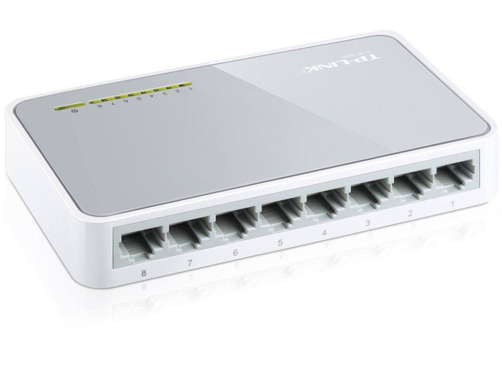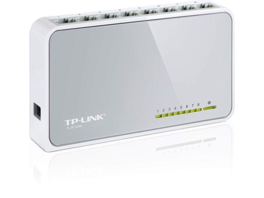 Switch TP-LINK TL-SF1008D je malý, kvalitní a rychlý 8portový přepínač. Všech osm portů podporuje funkci Auto MDI/MDIX a vy se tak nemusíte starat o to, který kabel máte připojit. Porty automaticky rozpoznají rychlost přenosu 10 Mbit nebo 100 Mbit připojených zařízení, signalizace a funkčnost je zobrazena pomocí LED diod a také podporuje standardy IEEE802.3x. Switch je napájen pomocí externího adaptéru a je vhodný pro malé SoHo sítě s rychlostí 100 Mbps.Parametry: