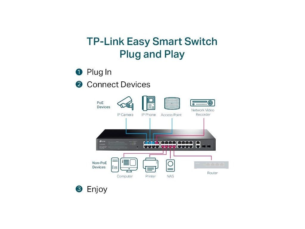 TP-Link TL-SG1428MPE Smart je víceúčelový PoE switch s vysokým výkonem. Switch nabízí velmi jednoduché použití. Zapojte jej do elektřiny a do internetové sítě, připojte potřebná zařízení a užívejte si výhody dokonalého propojení.