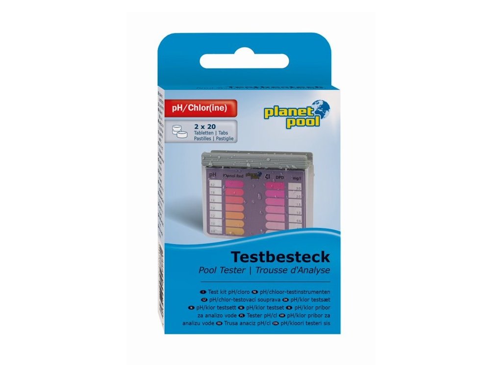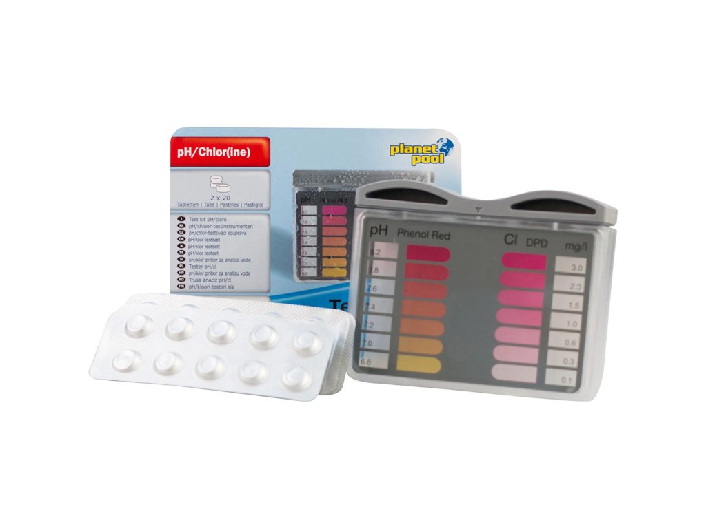Tabletkový tester pH / Chlor Voda v bazénu vyžaduje neustálou kontrolu a tato testovací sada na měření pH a chlorové koncentrace Vám pomůže ušetřit čas a také přesně zjistit co Váš bazén potřebuje. Správná hodnota pH je základním předpokladem k úspěšné a systematické péči o vodu v bazénu. Hodnota pH by se měla vždy pohybovat v ideálním rozmezí 7,0-7,6, protože právě zde dosahují přípravky péče o vodu svého maximálního efektu při nejmenším použitém množství. Hodnota volného chlóru v bazénové vodě by se měla pohybovat v rozmezí 1,0-3,0 mg/l. Pomocí této testovací sady rychle a snadno určíte hodnotu pH a koncentrace volného chlóru v bazénové vodě. Použijte tablety Phenol Red ke stanovení hodnoty pH a tablety DPD1 ke stanovení hodnoty koncentrace volného chlóru. Sada obsahuje 20 tablet Phenol Red, 20 tablet DPD1 a tester (odměrka se stupnicí). Použití:Naplňte odměrku vodou z bazénu, dokud nejsou komory zcela plné. Nyní vložte 1 tabletku Phenol Red a 1 tabletku DPD 1 do příslušné komory (dle označení). Nedotýkejte se tabletek prsty, jinak budou výsledky měření nepřesné. Protřepejte odměrku, dokud se tabletky zcela nerozpustí a voda v komorách nezbarví. Nyní můžete přečíst hodnoty na stupnici odměrky. Po přidání přípravků péče o vodu a filtrování vody je vhodné počkat 2-3 hodiny a provést nový test. Hodnotu pH a hodnotu chlóru doporučujeme zjišťovat alespoň dvakrát týdně.Doplňkové parametry