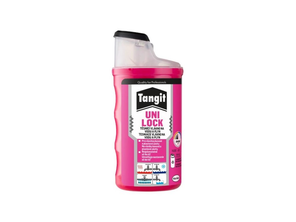 Těsnící vlákno na závity v ergonomickém obalu z plastu je vhodná pro utěsňování závitových spojů v rozvodech vody a plynu. Vlákno zajišťuje okamžité utěsnění ihned po montáži.