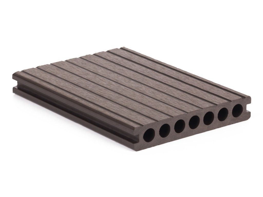 Terasové prkno G21 2,5 x 14,8 x 300 cm, Dark Wood s kulatými výřezy, WPC, 63910411
