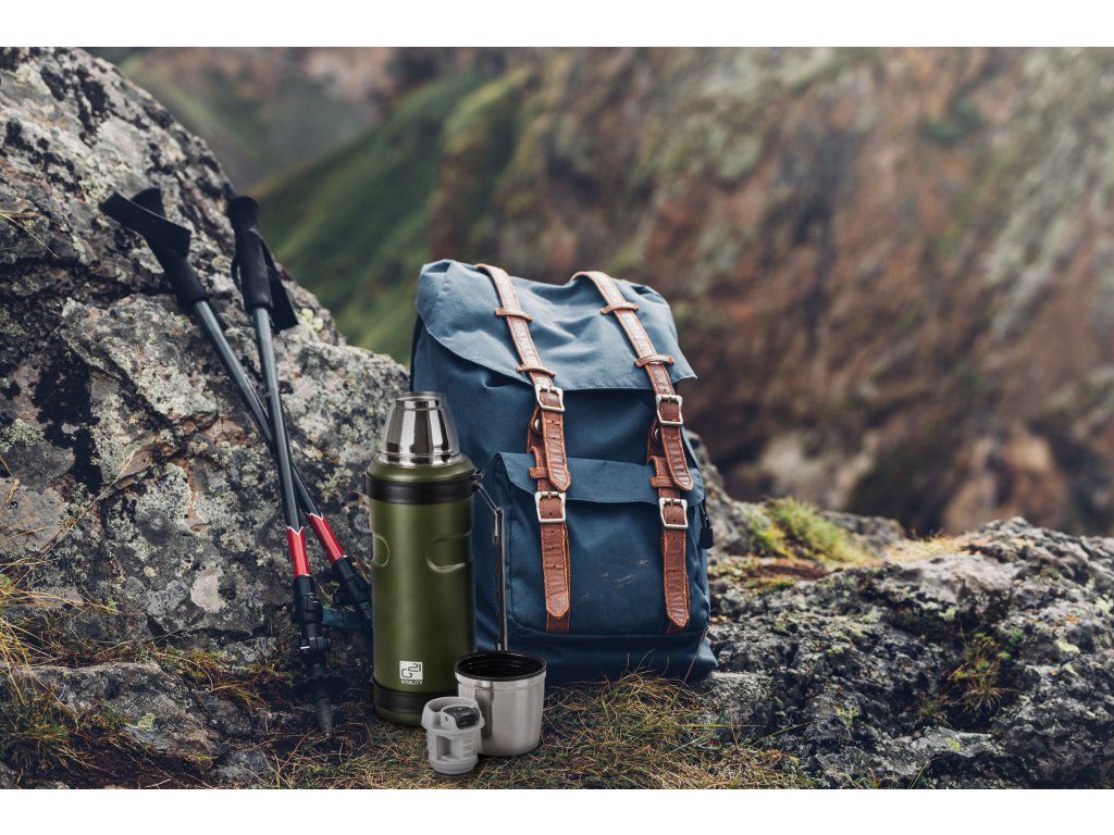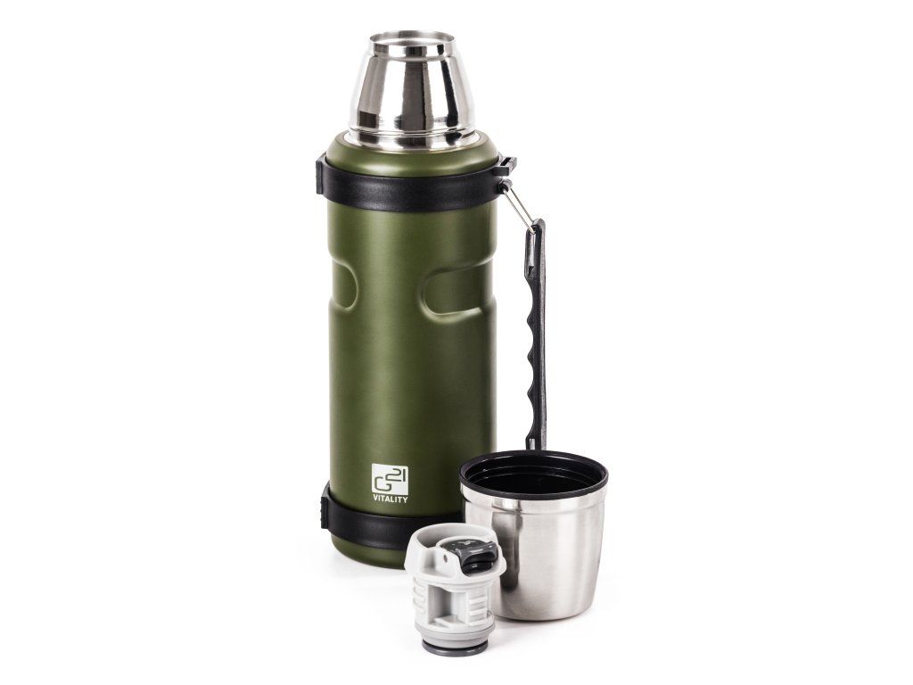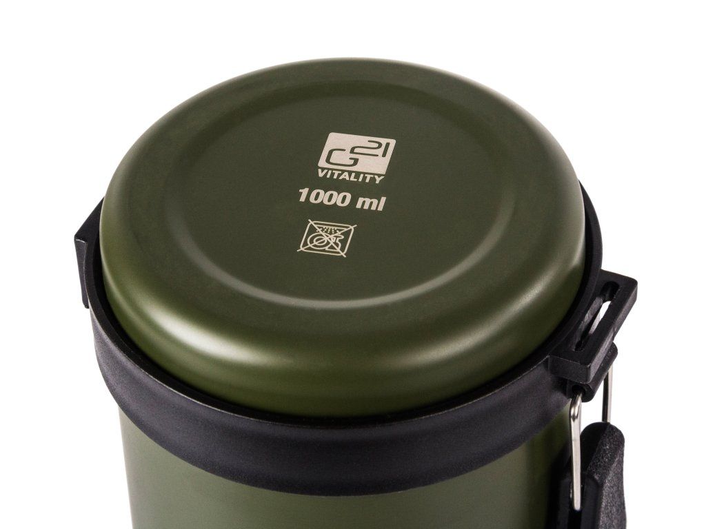 Termoska G21 na pití, 1000 ml, khaki zelená s rukojetí, 60022404