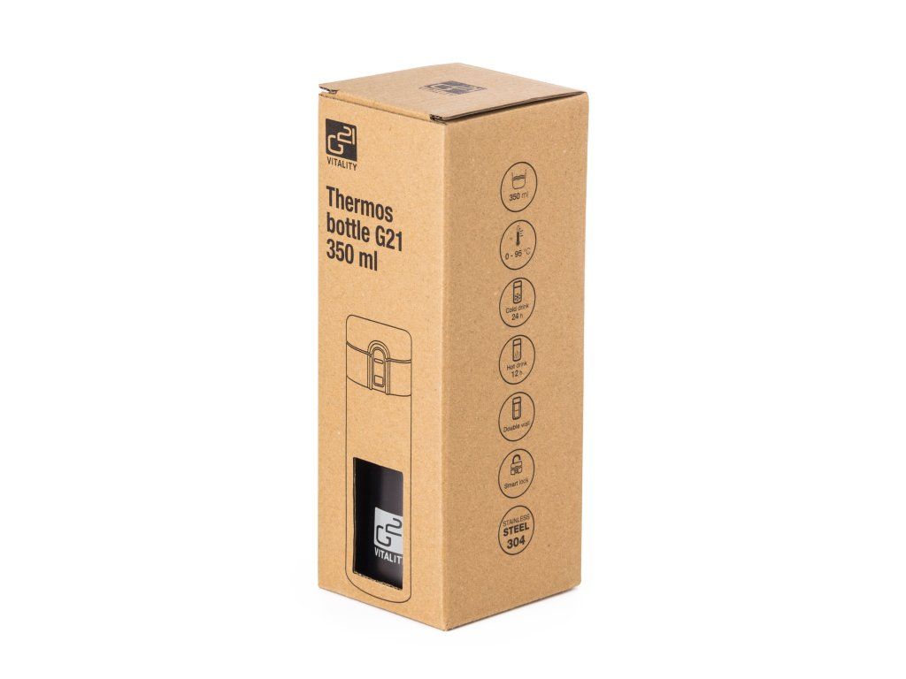 Největší předností termohrnku G21 je kvalitní termoizolace. Termoláhev z nerezové oceli má dvojité stěny a dokonale těsnící víčko. Nápoje tak udrží v požadované teplotě opravdu dlouho – horké až 12 hodin, studené k osvěžení až 24 hodin.
