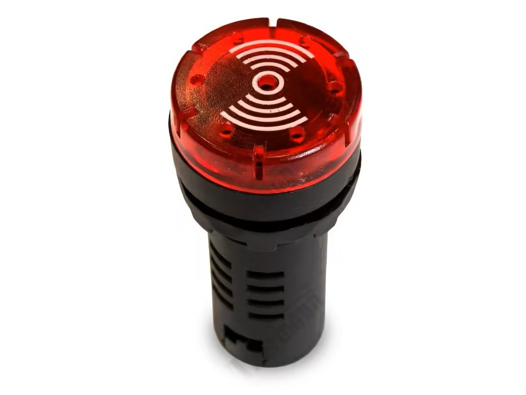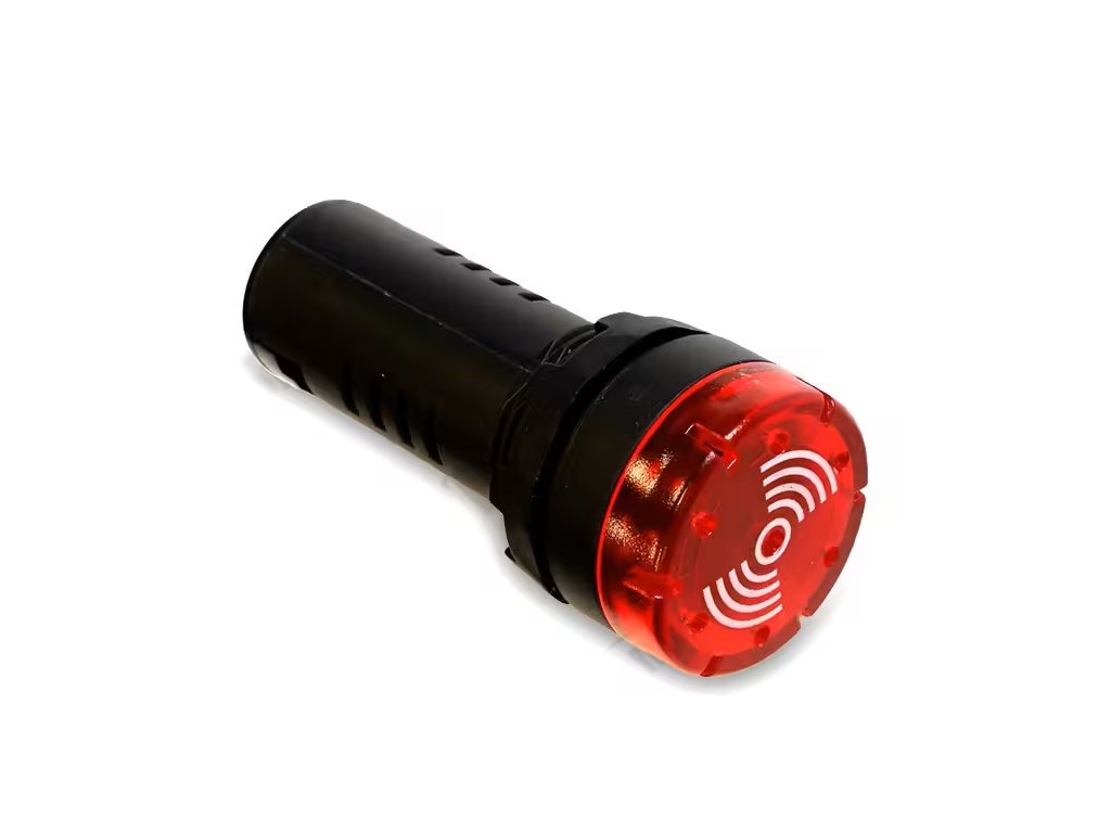 Vydává výrazný zvukový signál v kombinaci s blikajícím červeným světlem.