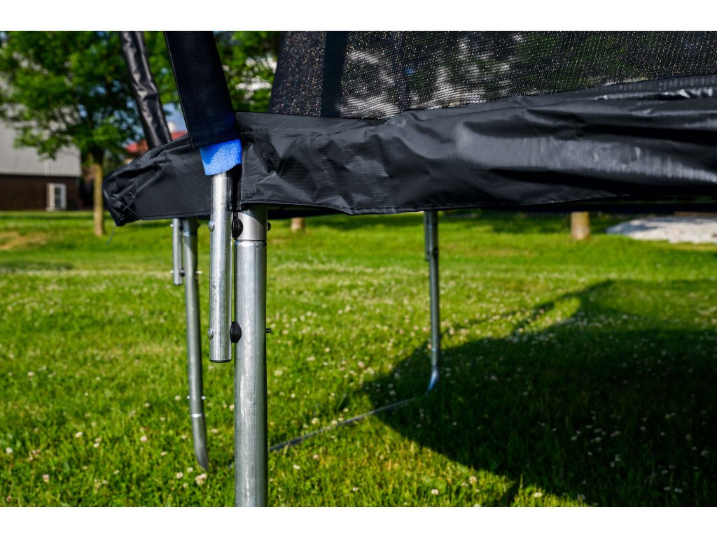 Velkou pozornost jsme věnovali i spolehlivému zakrytí pružin trampolíny pro minimalizaci rizika poranění při skákání na trampolíně. Kryt pružin je z odolného nepromokavého materiálu s měkkou výplní. Kryty bočních sloupků trampolíny jsou také obaleny měkkou pěnou v nepromokavém pouzdře.