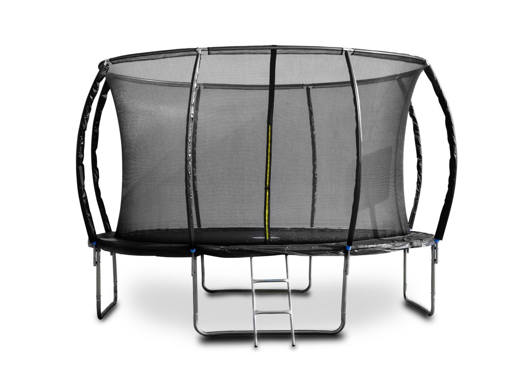 Trampolína G21 SpaceJump, 366 cm, černá, s ochrannou sítí + schůdky zdarma, 6904269