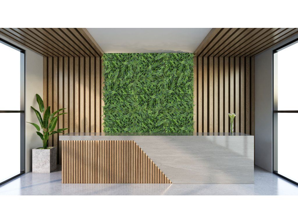 Chcete obohatit váš prostor o přírodní prvek, ale bez náročné péče o rostliny? Zelená stěna G21 Listo Ferns přináší luxusní 3D efekt a realistický vzhled živé zeleně s nulovými nároky na údržbu – bez zalévání, bez zastřihování, zato s okamžitým efektem. Vytváří útulné prostředí, navozuje pocit klidu a harmonie a zároveň pomáhá vizuálně oddělit jednotlivé zóny, např. v otevřených kancelářích, na terasách nebo ve vstupních halách.