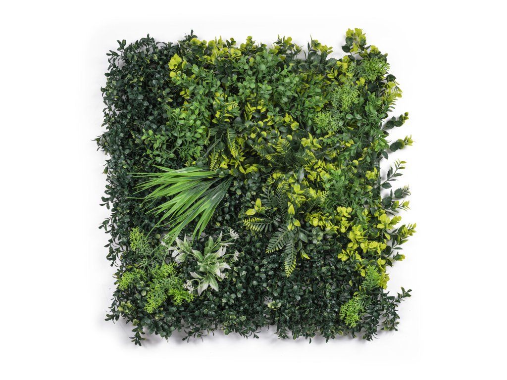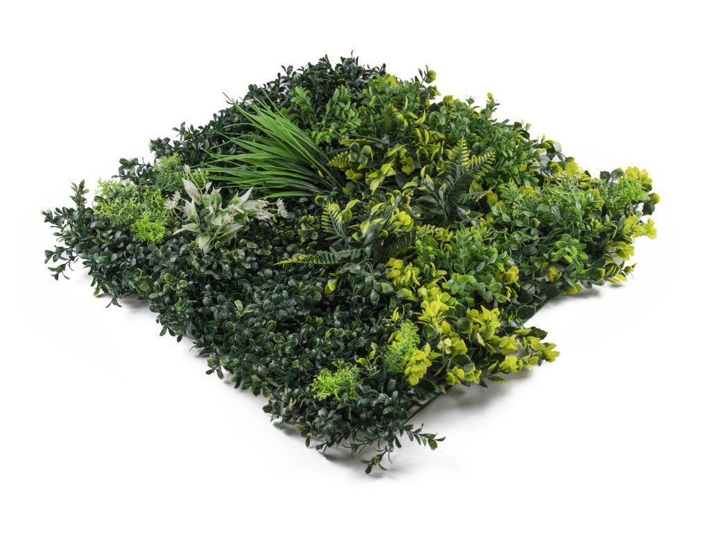Jeden panel, spousta možností. Použijte jej jako zajímavý interiérový doplněk, vytvořte zelenou stěnu v obýváku, přírodní zákoutí na balkoně, nebo zakryjte starý plot. Panely o rozměrech 50 x 50 cm snadno zkombinujete do větších celků díky modulovému systému rastrů a příchytek na zadní straně každého panelu. Zvládnete to bez vrtání a nářadí, stačí zip páska nebo obyčejné háčky. Ať už panely připevníte na betonovou zeď, dřevěné obložení nebo sádrokarton, výsledek bude vždy perfektní. A co když potřebujete menší rozměr? Pak panel jednoduše zastřihnete a natvarujete podle potřeby.