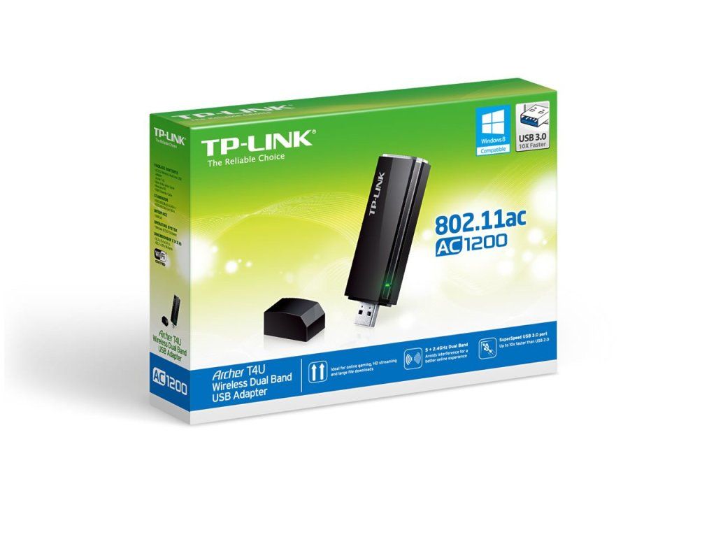 TP-LINK Archer T4U je bezdrátový USB adaptér s duálním pásmem AC 1200 dávající uživatelům možnost křišťálově jasného připojení v pásmu 5 GHz nebo v starším pásmu 2,4 GHz. Mohou tak vylepšit možnosti bezdrátového připojení svého notebooku nebo počítače o pásmo 5 GHz, přičemž mají stále možnost využívat starší pásmo bezdrátové sítě 2,4 GHz.