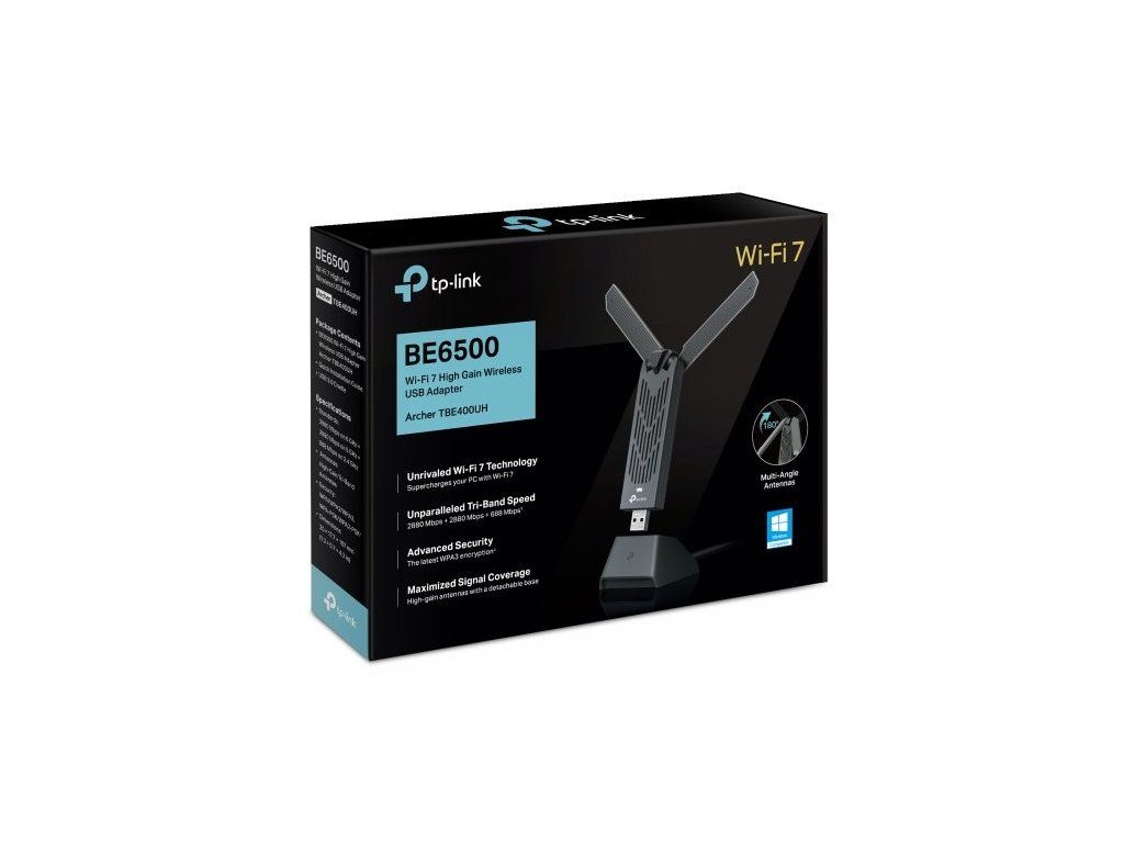 USB klient TP-Link Archer TBE400UH vám zajistí silné třípásmové Wi-Fi 7 připojení. V pásmu 6 GHz a 5 GHz vám poskytne rychlost připojení až 2 882 Mb/s a v pásmu 2,4 GHz až 688 Mb/s. K dispozici máte rozhraní USB 3.0, které zajistí vyšší rychlosti přenosů. Streamujte videa v HD kvalitě, hrajte online hry se svými přáteli nebo si jen prohlížejte informace na webu. Zařízení podporuje operační systém Windows 10 a 11.