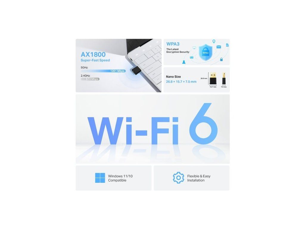 USB klient TP-Link Archer TX20U Nano AX 1800 adaptér, 2,4/5GHz, USB 3.0, 52055806