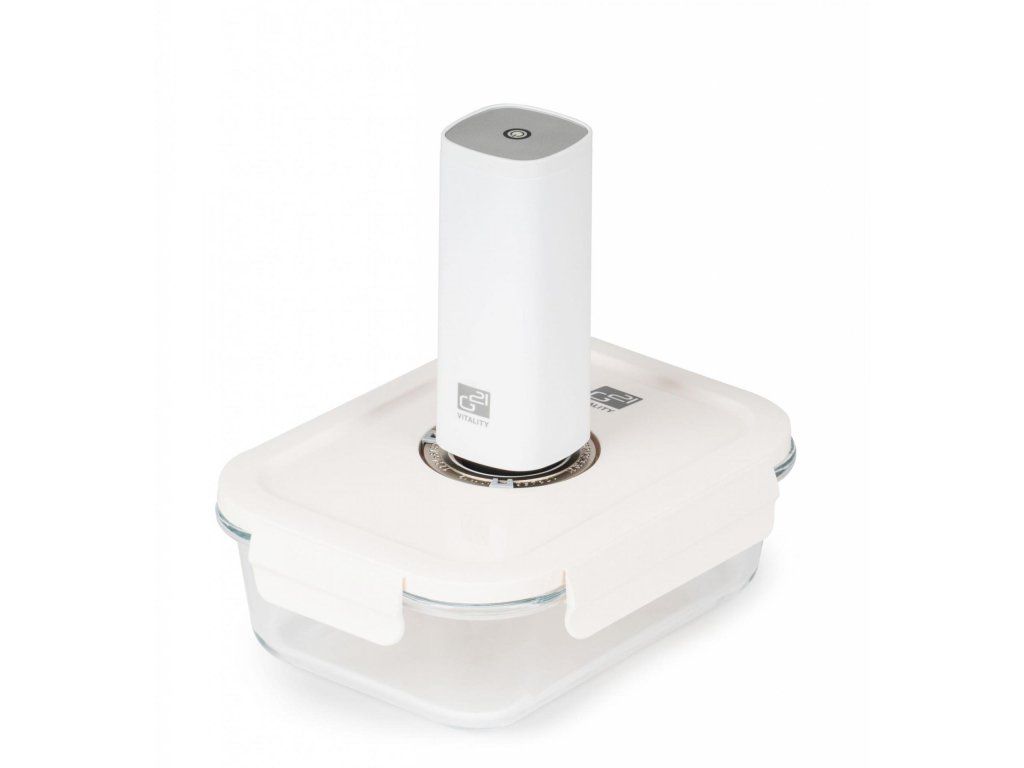 Pro pohodlné a snadné vakuování čerstvých i hotových potravin doporučujeme vynikající vakuovací dózu G21 s objemem 1 040 ml. Prodlouží trvanlivost potravin, zachová jim čerstvost i plnou chuť a vůni a především všechny zdraví prospěšné látky. Velkou výhodou této dózy je její široké využití – potraviny v ní po zavakuování můžete uložit do ledničky, zamrazit nebo po sundání víka rovnou zapékat v troubě či horkovzdušné fritéze.