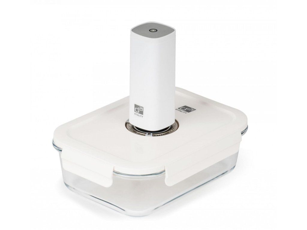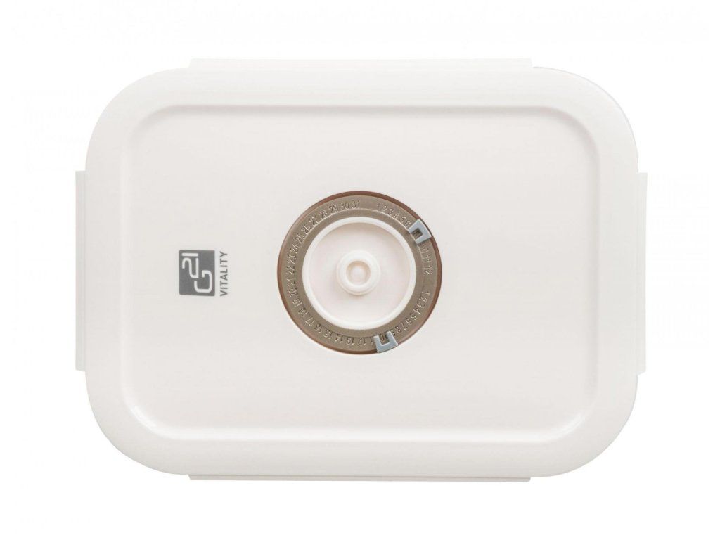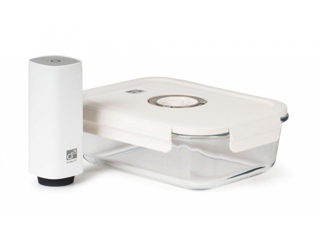 Pro pohodlné a snadné vakuování čerstvých i hotových potravin doporučujeme vynikající vakuovací dózu G21 s objemem 1 480 ml. Prodlouží trvanlivost potravin, zachová jim čerstvost i plnou chuť a vůni a především všechny zdraví prospěšné látky. Velkou výhodou této dózy je její široké využití – potraviny v ní po zavakuování můžete uložit do ledničky, zamrazit nebo po sundání víka rovnou zapékat v troubě či horkovzdušné fritéze.