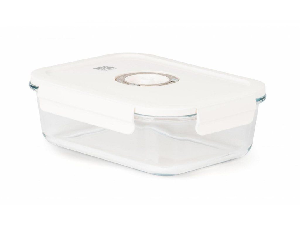 Plastové víko je vybaveno vakuovacím ventilem a praktickým nastavováním data. Budete tak vědět, kdy byly potraviny vakuovány nebo do kdy se mají spotřebovat. Ventil uprostřed víka lze jemně zmáčknout pro snadné uvolnění vakua.