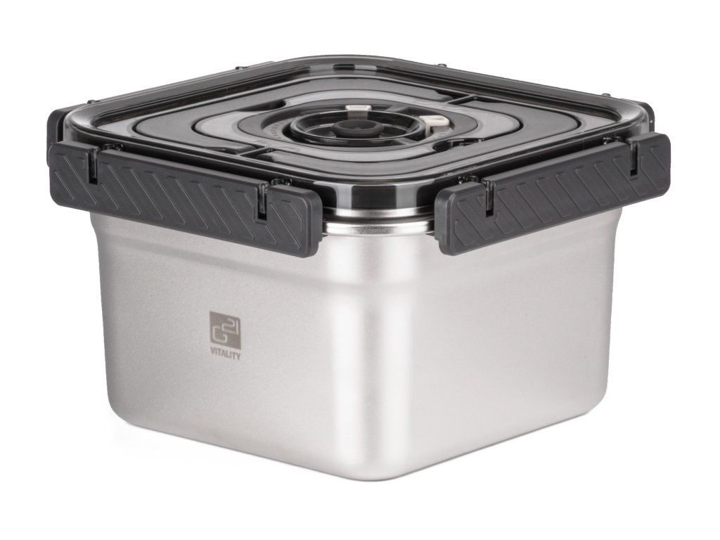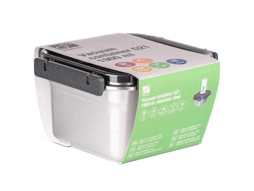 Bezpečné, odolné a hygienické skladování potravin. Nerezová vakuovací dóza G21 s objemem 1900 ml je ideální pro prodloužení čerstvosti potravin i praktické uskladnění v ledničce, mrazáku nebo pečení bez víka. Využijete ji každý den a pro každou situaci – doma i na cestách.