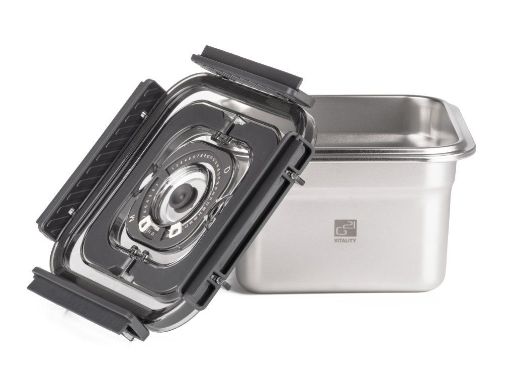 Vakuováním výrazně prodlužujete trvanlivost potravin, zachováváte jejich chuť, vůni i nutriční hodnoty. Nerezová dóza je kompatibilní se všemi vakuovačkami G21. Vakuování minimalizuje kontakt potravin se vzduchem, takže zpomaluje oxidaci a zamezuje růstu bakterií a plísní. Díky tomu si potraviny uchovávají svou přirozenou chuť, texturu i živiny mnohem déle než při běžném skladování.
