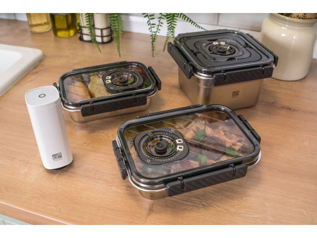 - 1x vakuovací dóza z nerezové oceli s víkem