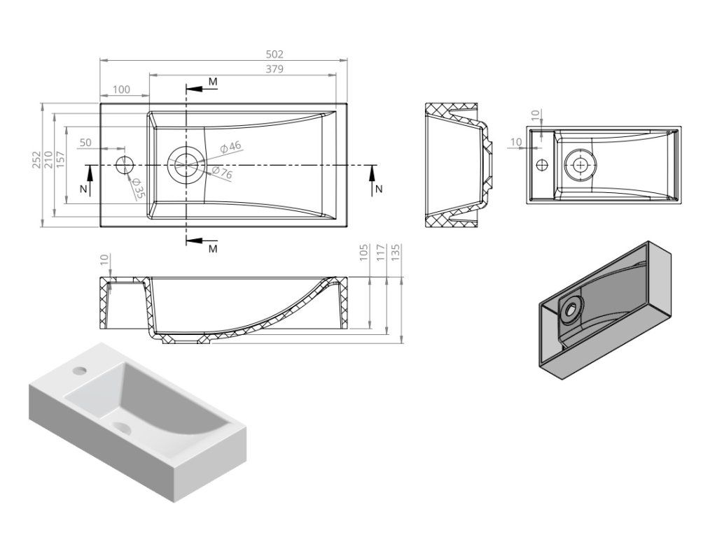 | Tvar umyvadla: | obdélník |