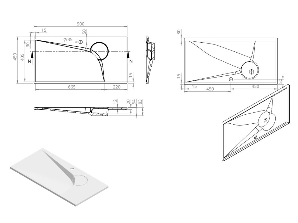 Popis umyvadla na desku Boomerang 90