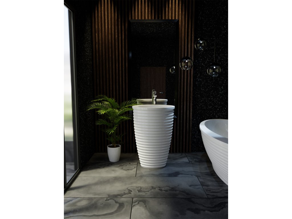 Jedinečné volně stojící umyvadlo vyrobené z vysoce kvalitního litého mramoru. Díky jednoduchému a elegantnímu tvaru je ideální pro každou stylovou koupelnu. Skvělá volba pro ty, kteří chtějí vnést do své koupelny luxus. Díky nejmodernější technologii výrobního procesu působí umyvadlo nejen velice designově, ale je také snadno čistitelné a extrémně odolné.