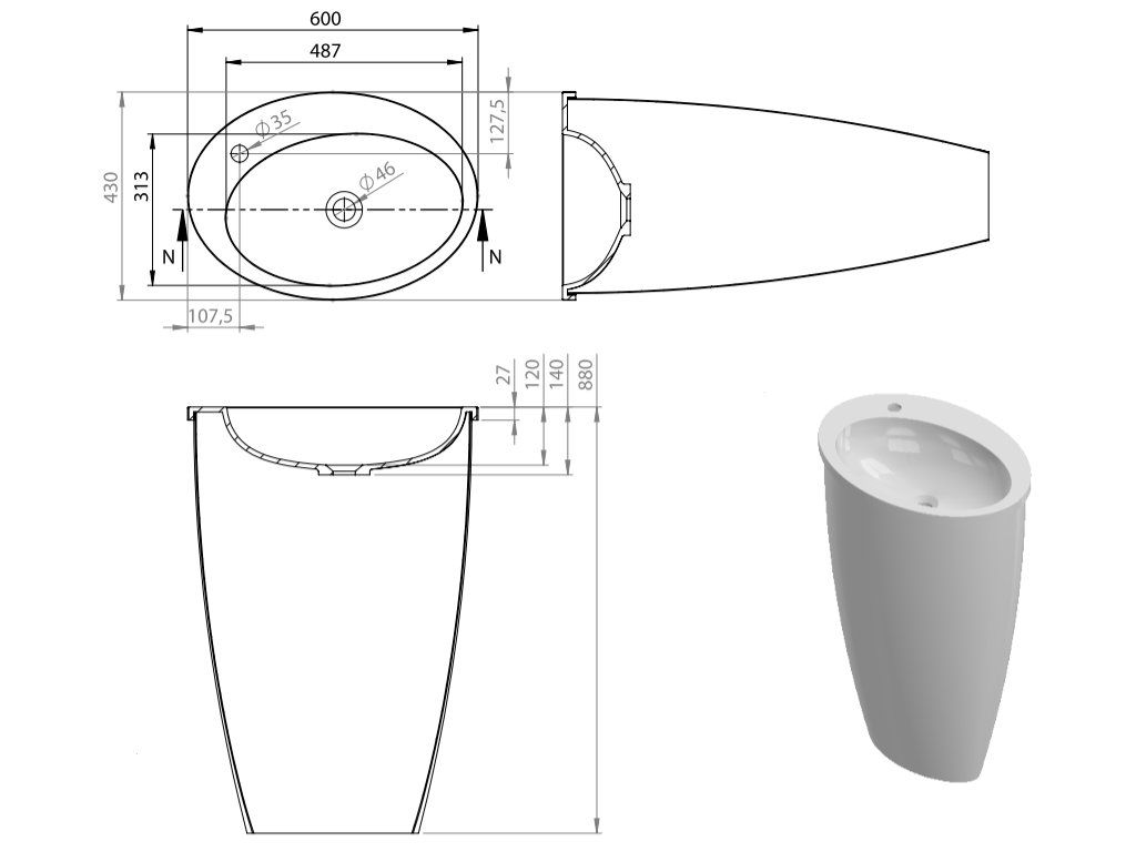 - veškeré technické specifikace naleznete v nákresu umyvadla