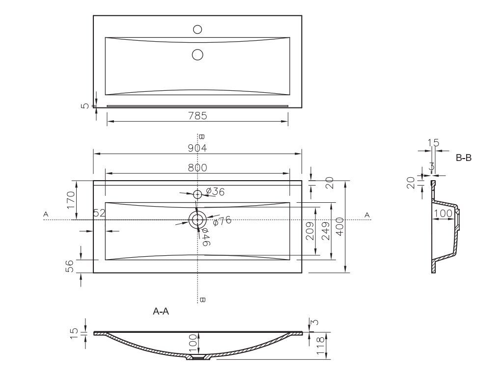 - s otvorem pro umyvadlovou baterii nebo bez otvoru