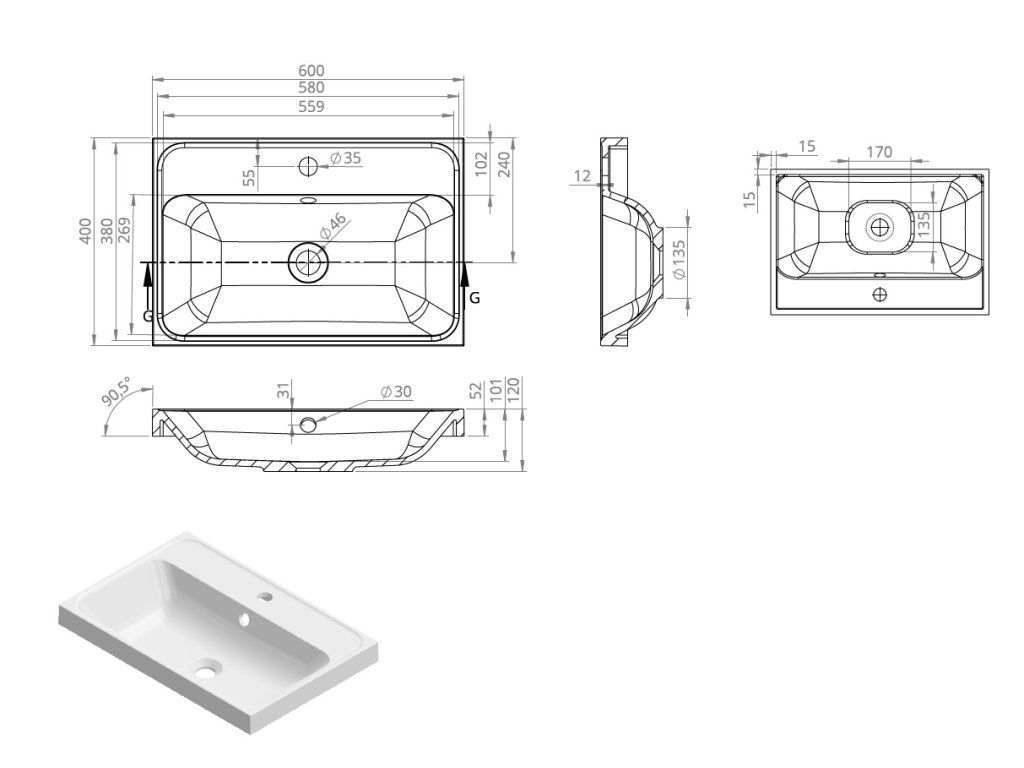 | Tvar umyvadla: | obdélník |