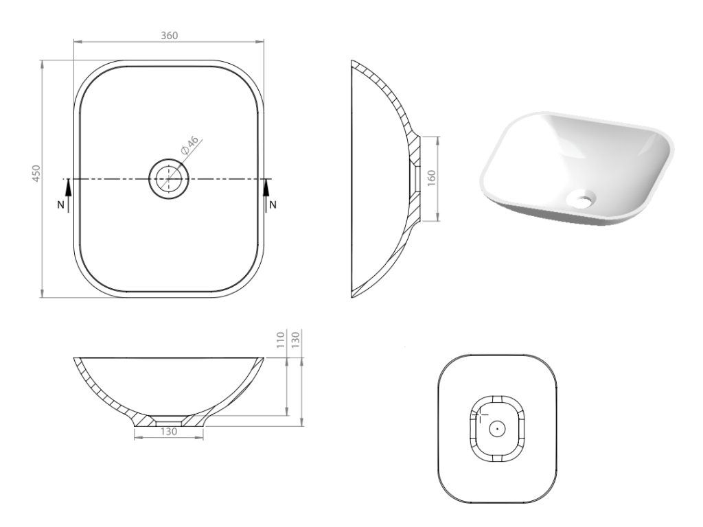 Vayer Draco 45 umyvadlo na desku, litý mramor, VAY-DRC