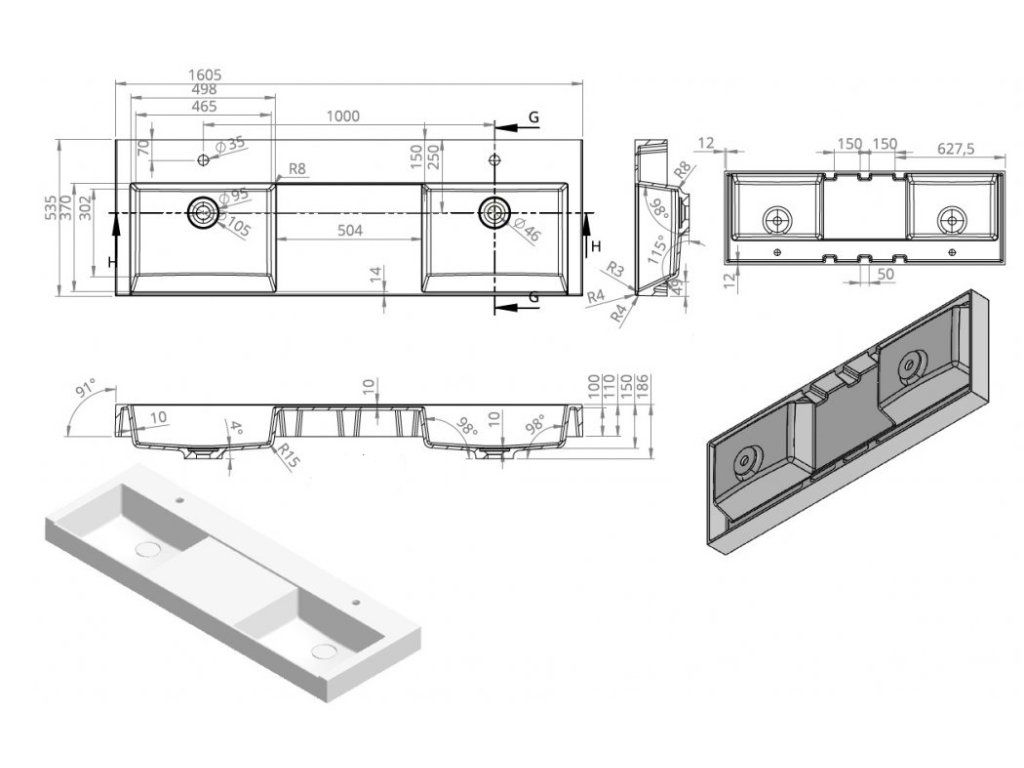 | Tvar umyvadla: | obdélník |